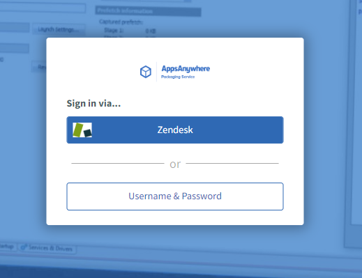 Login to the AppsAnywhere Packaging Service using Zendesk credentials