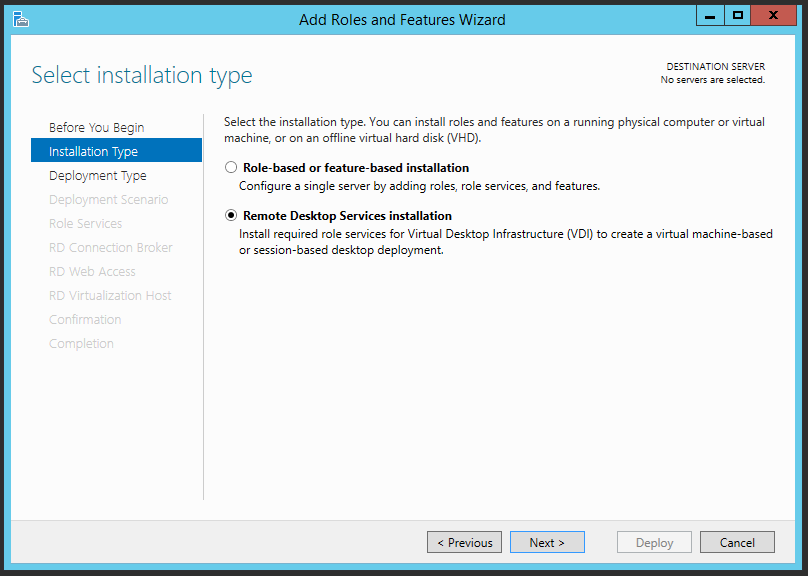 For more information on the Standard Deployment option, take a look at this technet blog entry