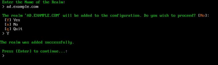 Once the realm has been added successfully, press Enter to return to the ACC menu.