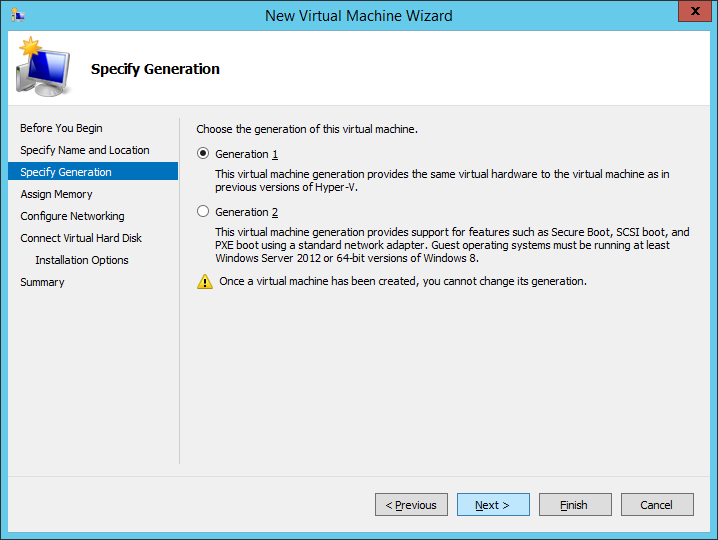 Ensure that Generation 1 or Generation 2 is selected in the Generation drop-down list based on the appliance version downloaded.