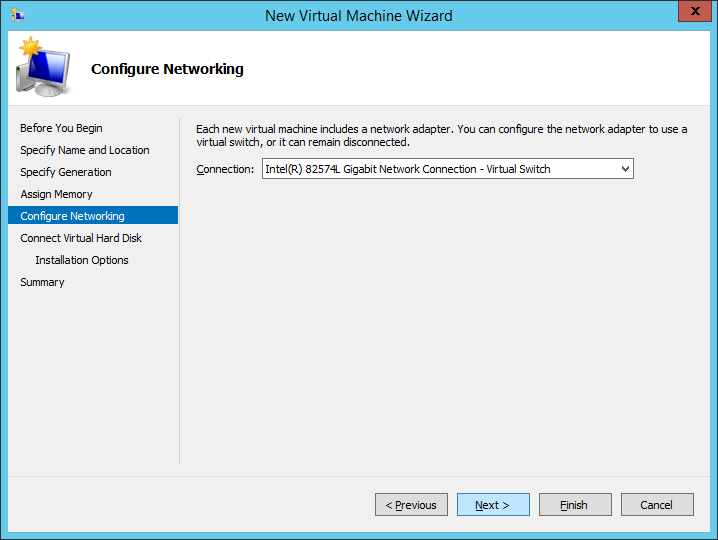Select the relevant network Virtual Switch from the Connection drop down list.