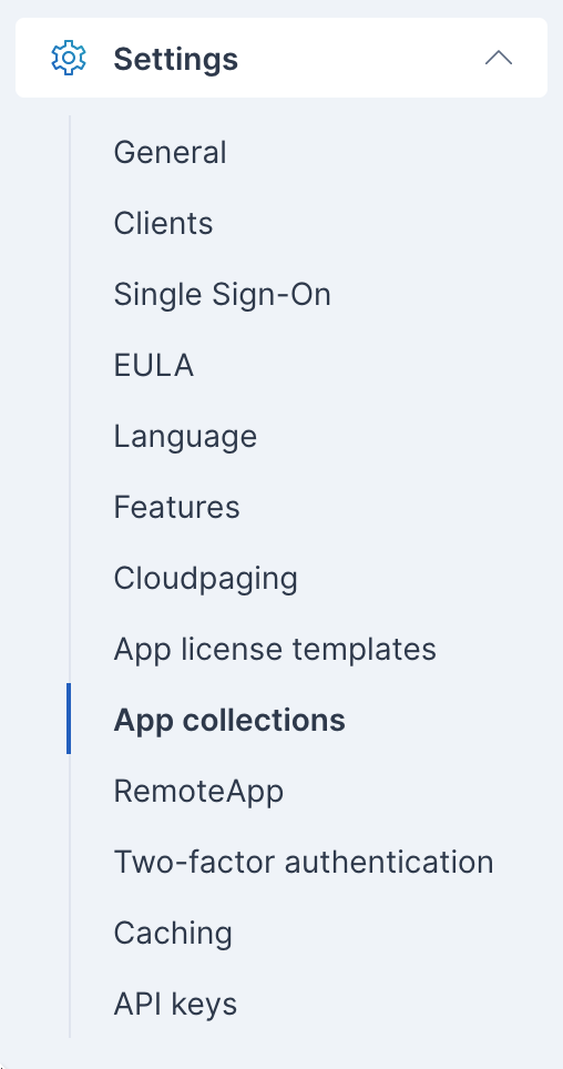Search for App collections in the search box., or expand the Settings section and click App collections in the sidebar
