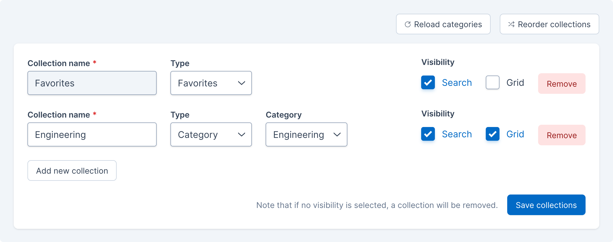 Click the Save search collections or Save app grid collections button, depending on which section you are editing