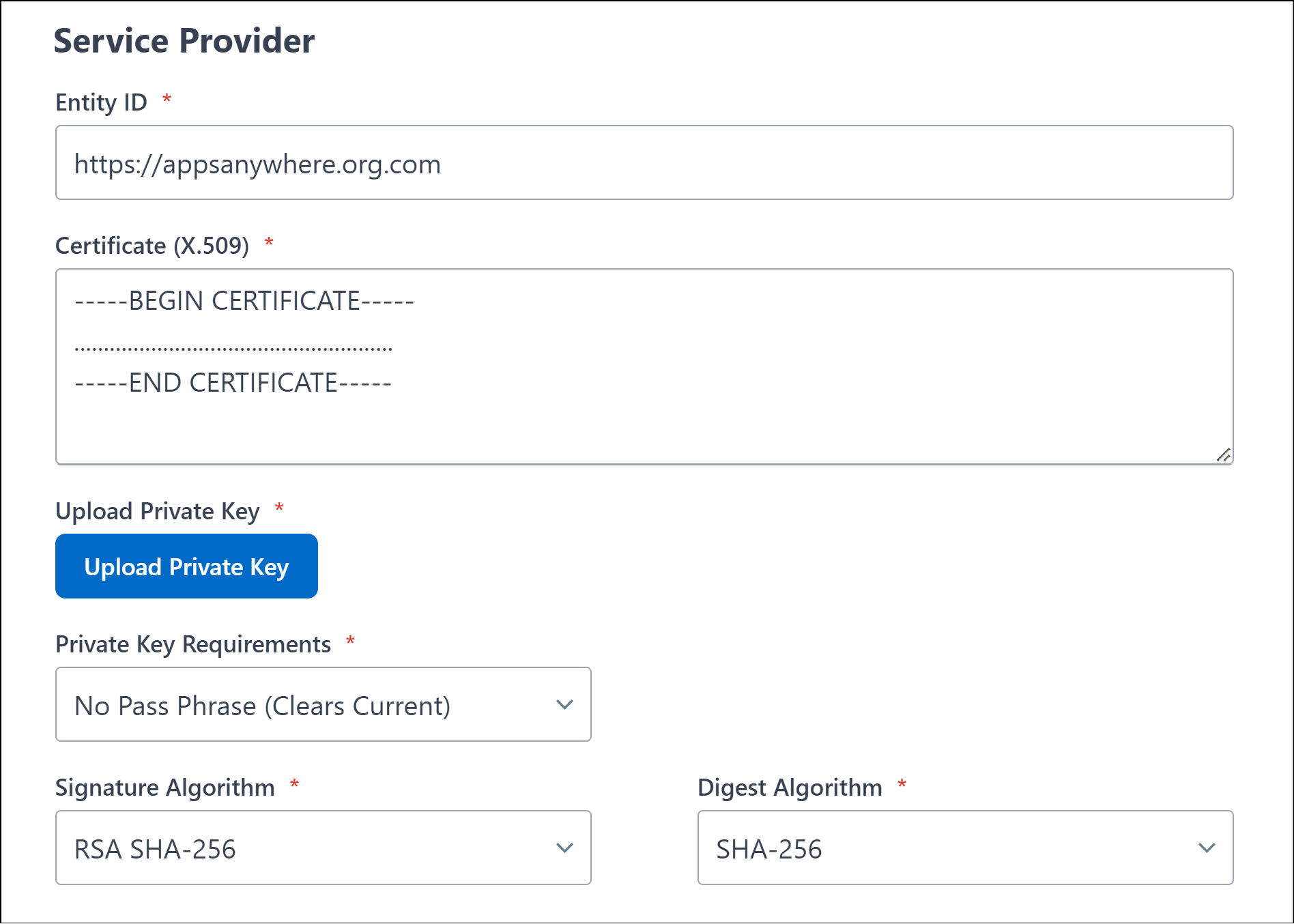 Please be aware that the AppsAnywhere SSO provider path /sso/saml2 is specific and MUST be entered exactly as per this example.