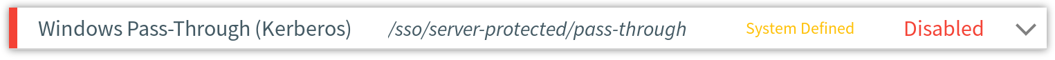 Each SSO method is listed as an expandable row under it's respective SSO category, as shown above. You can see the full details for each method by clicking on the row to expand it. Clicking the row header again will collapse the details pane, as will expanding any other SSO method.