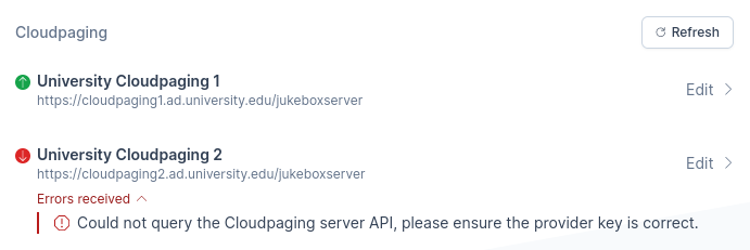 Additionally, to assist with management of these components and connections, especially in the event of an issue, links directly to the edit screens are also included in the displayed status information, if applicable.