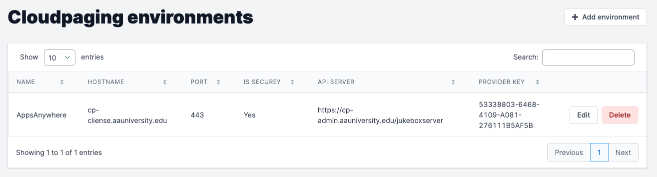 Editing the details of or deleting a cloudpaging environment will affect all active application sessions and users' ability to launch any applications provided from that environment. Be sure to test an application launch after you make any changes!