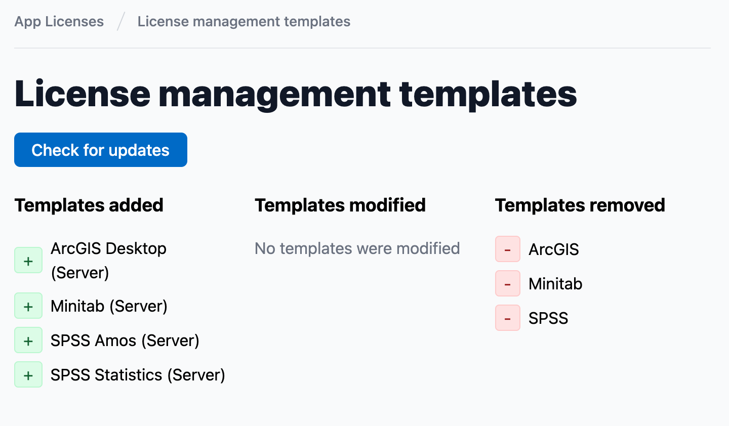 Click on the Check for updates button to retrieve any updates and apply them to the Templates available in AppsAnywhere