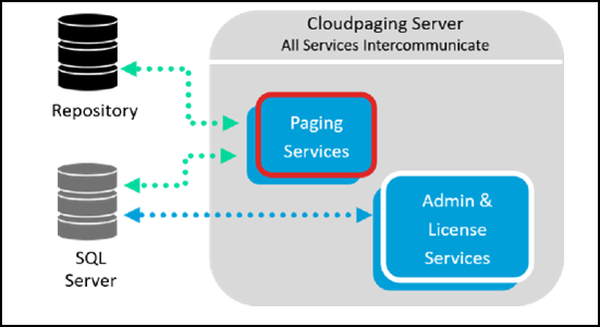 The Paging services store, manage and page cloudified applications to the Cloudpaging Player on end-users’ devices.
