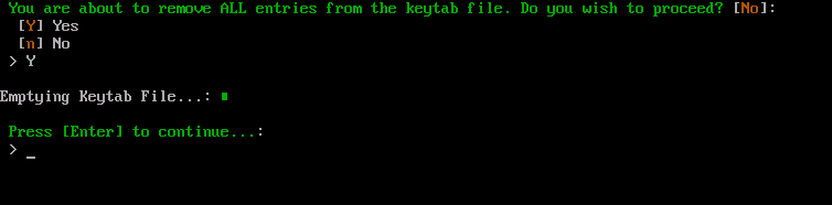 This option can be used if for some reason the Keytab file becomes corrupt or you wish to remove unwanted, invalid entries.