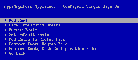 The Add Realm option allows you to enter Kerberos realm information that will be used by the appliance: