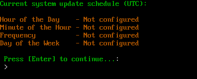 If no previous custom update schedule has been defined the status will be displayed as Not configured. In this situation the default OOB (out-of-box) monthly update check schedule will be used.