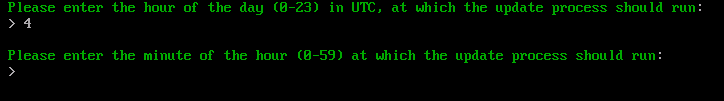 Enter the hour of the day you wish the update process to run. Press Enter to continue.