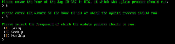 Select the frequency of which you would like the update process to run. Press Enter to continue.
