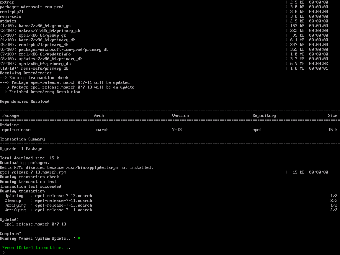 Any updates that are available will be installed. Once the process is complete, press Enter to return to the ACC.