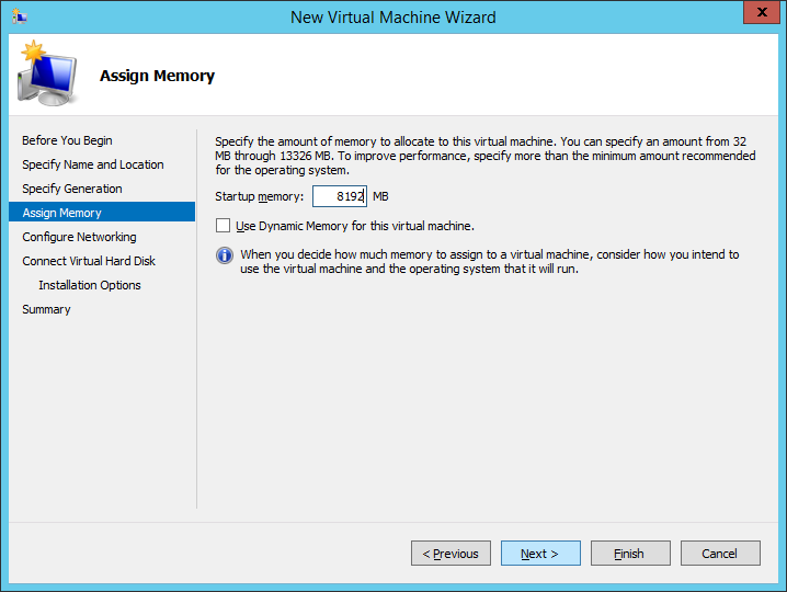 In the Startup memory field enter 8192, as per the recommended specifications.