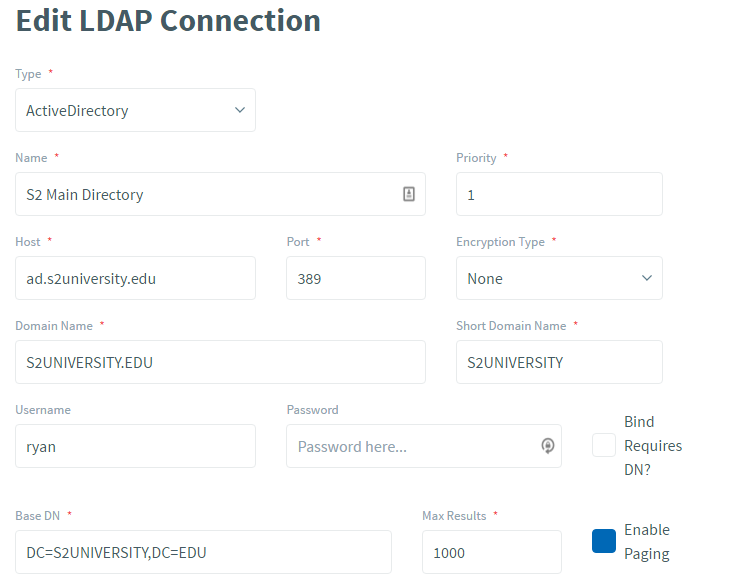 Remind yourself of what all the fields are and what values are expected by referring back to the Adding an LDAP connection page