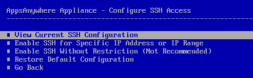 It is recommended to configure the AppsAnywhere appliance to only accept SSH requests from the necessary IP addresses or IP ranges.