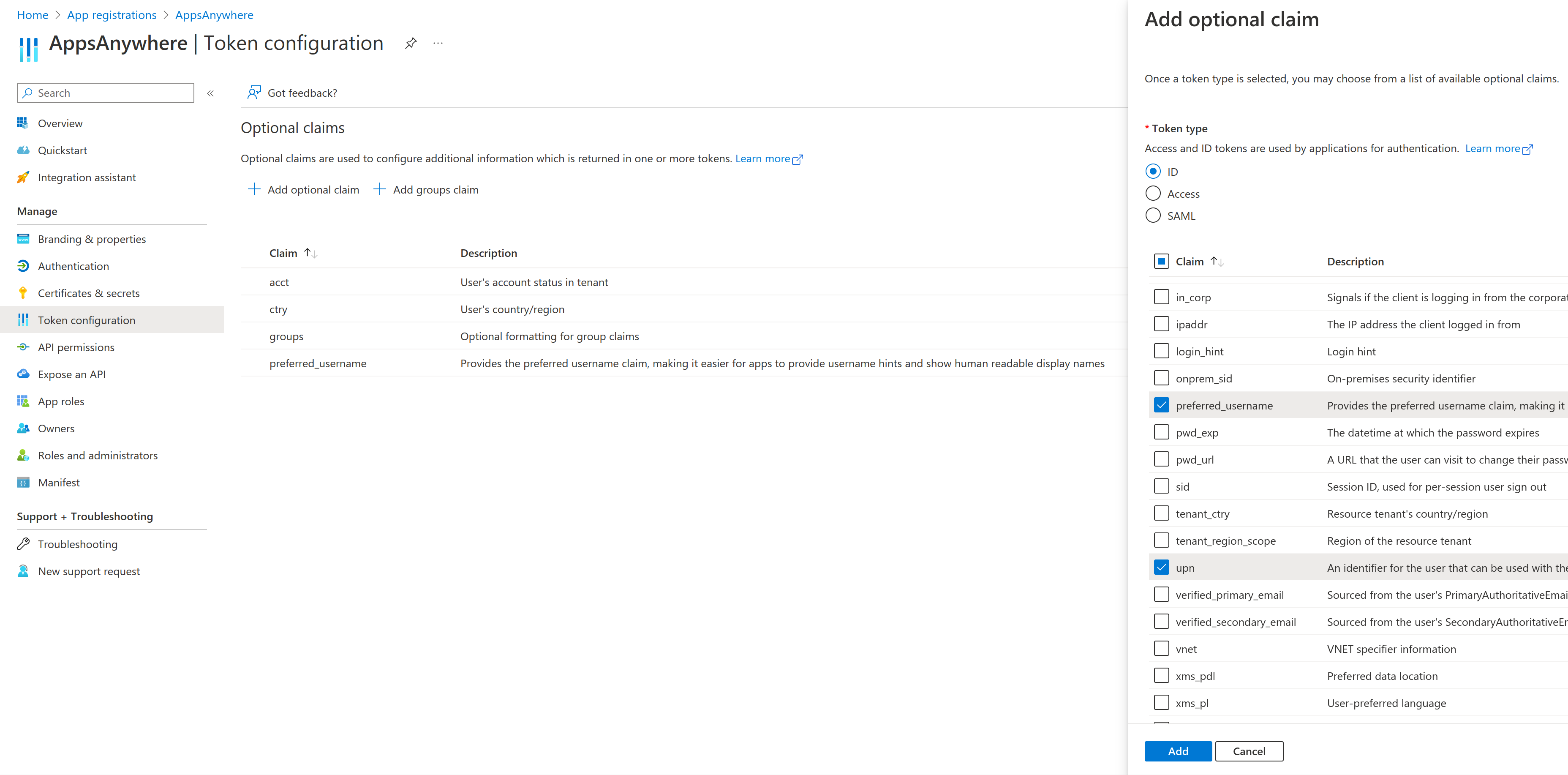 While not required, it is recommended to also include the upn claim as part of the ID token configuration. This can be configured via the following process: