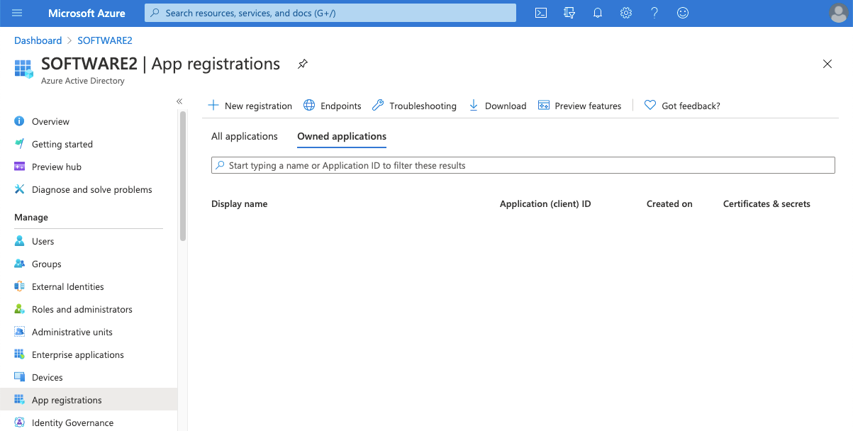 You will then be directed back to the App registrations screen where you should now see your app in the list.