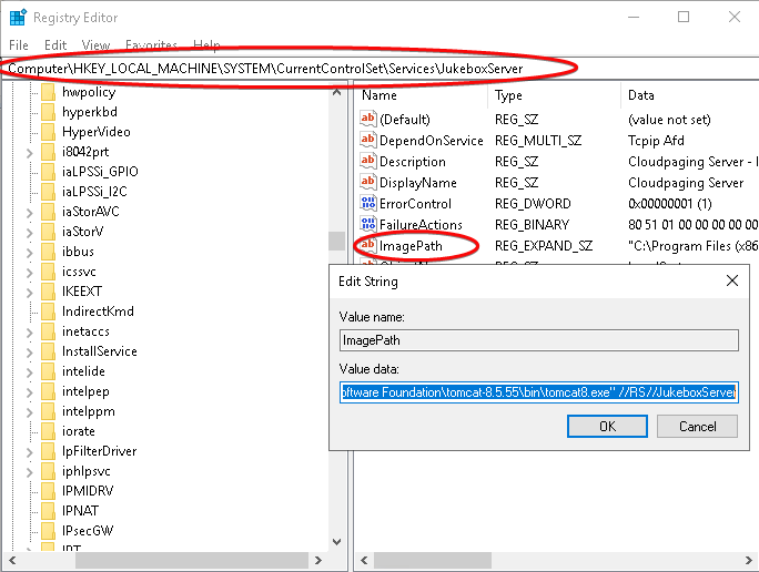 Then, navigate to the following registry key and edit the value below: HKEY_LOCAL_MACHINE\SYSTEM\CurrentControlSet\Services\JukeboxServer