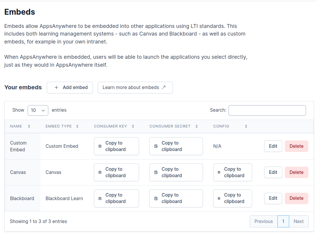 The clipboard icons within the table represent places in which you can click to copy the values present to use elsewhere, this is useful when it comes to configuring AppsAnywhere within the LMS!