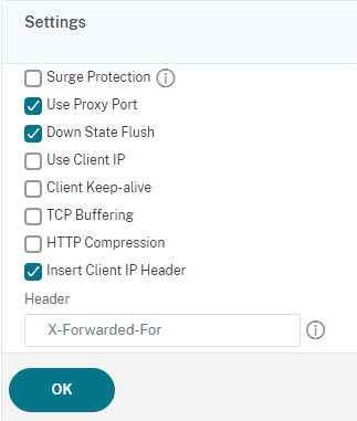 Enable the Insert Client IP Header and type in the X-Forwarded-For string for the Header text box and click OK
