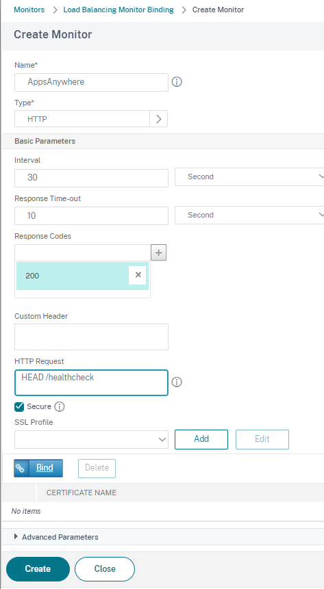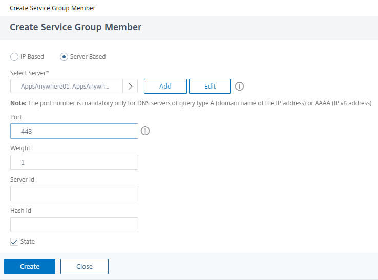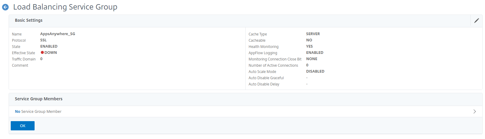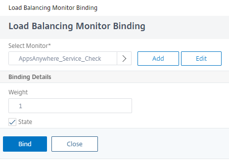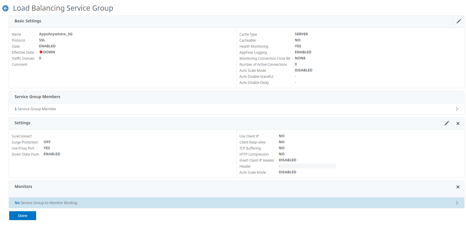 The following Server, Monitor, Service Group and Virtual Server configurations can be used with AppsAnywhere.