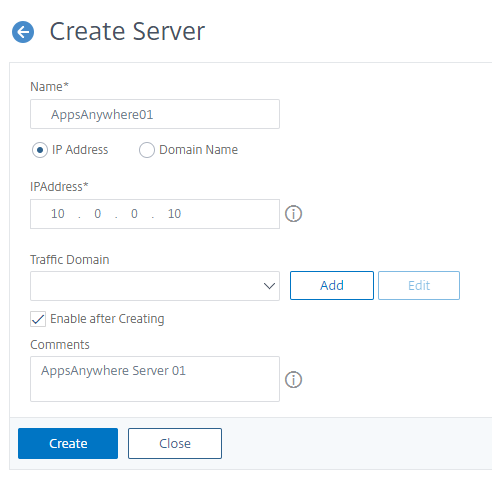 Specify the required name and IP address of your AppsAnywhere server and click Create to add the entry: