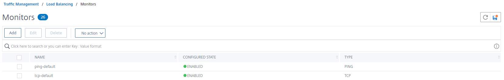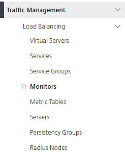 To add a service monitor, select Monitors from the Traffic Management -> Load Balancing section: