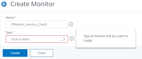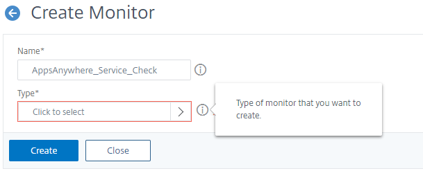 Specify a name for the monitor and click the “>” icon to select the monitor type.