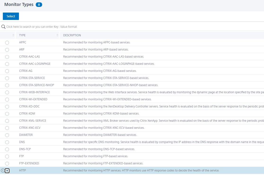 Click the “>” icon next to the Select Monitor option, select the Monitoring service created in the previous step and click Select to continue :