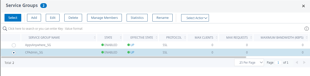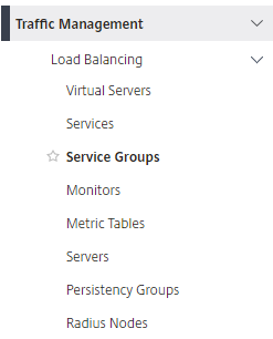 To create a service group containing the Cloudpaging Admin/License server, select Service Groups from the Traffic Management -> Load Balancing section: