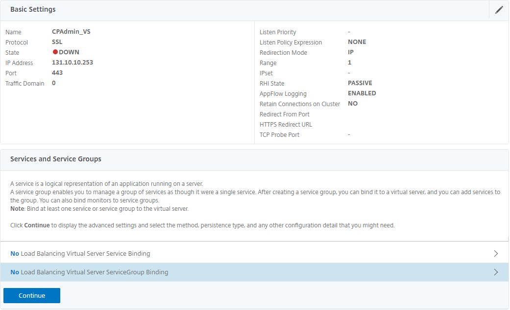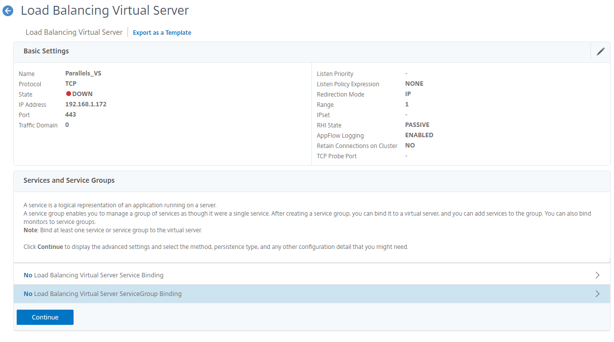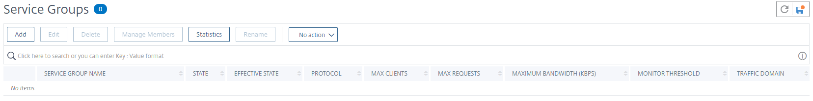 Click the No Load Balancing Virtual Server ServiceGroup Binding item under the Services and Service Groups section: