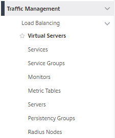 To create a Virtual Server, select Virtual Servers from the Traffic Management -> Load Balancing section: