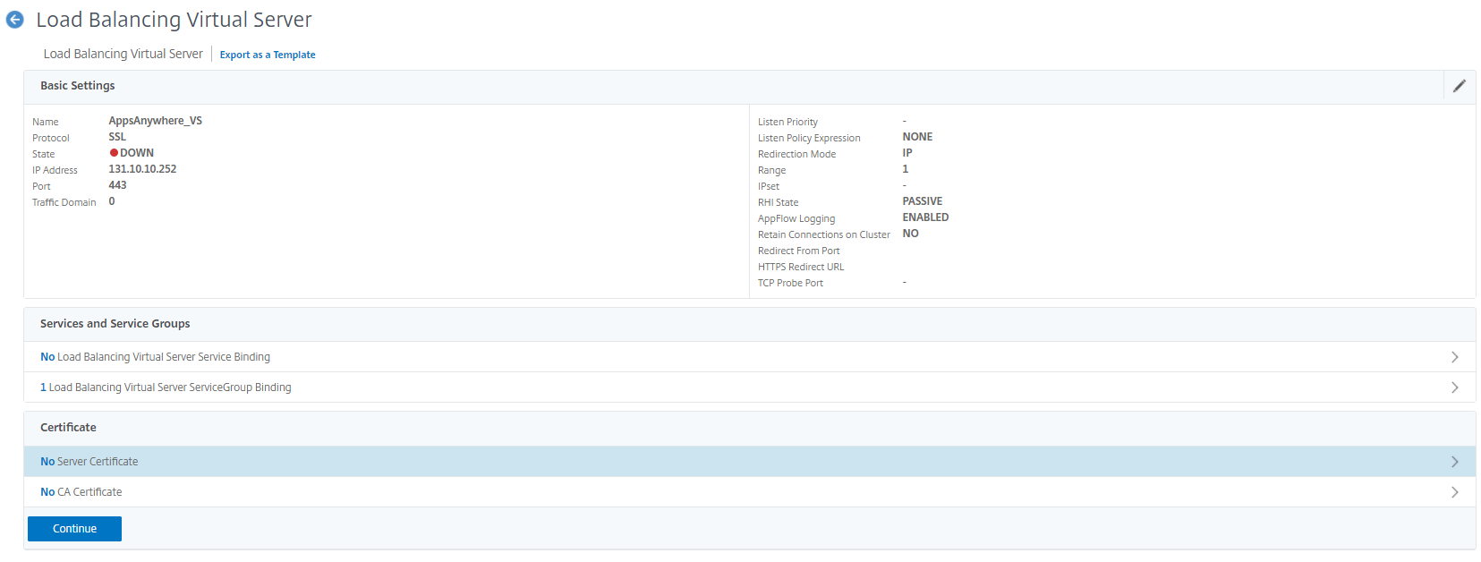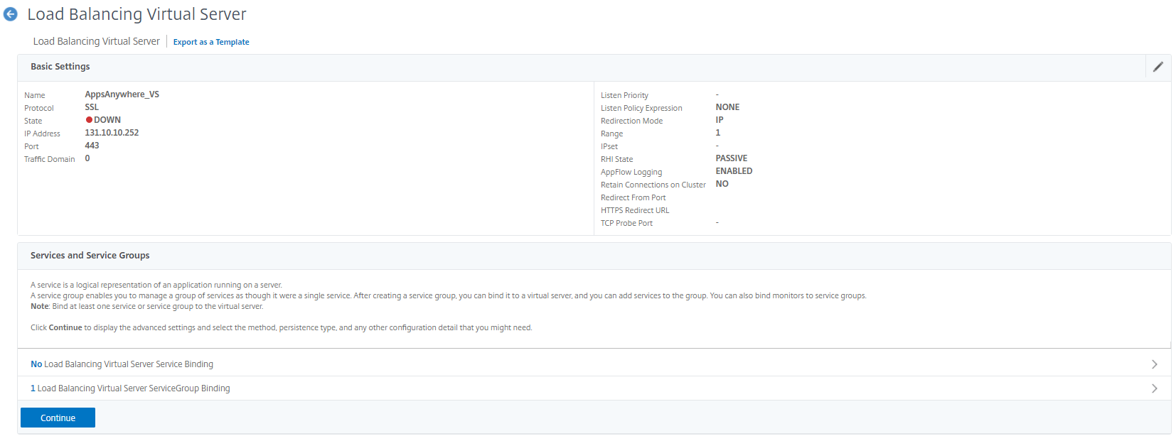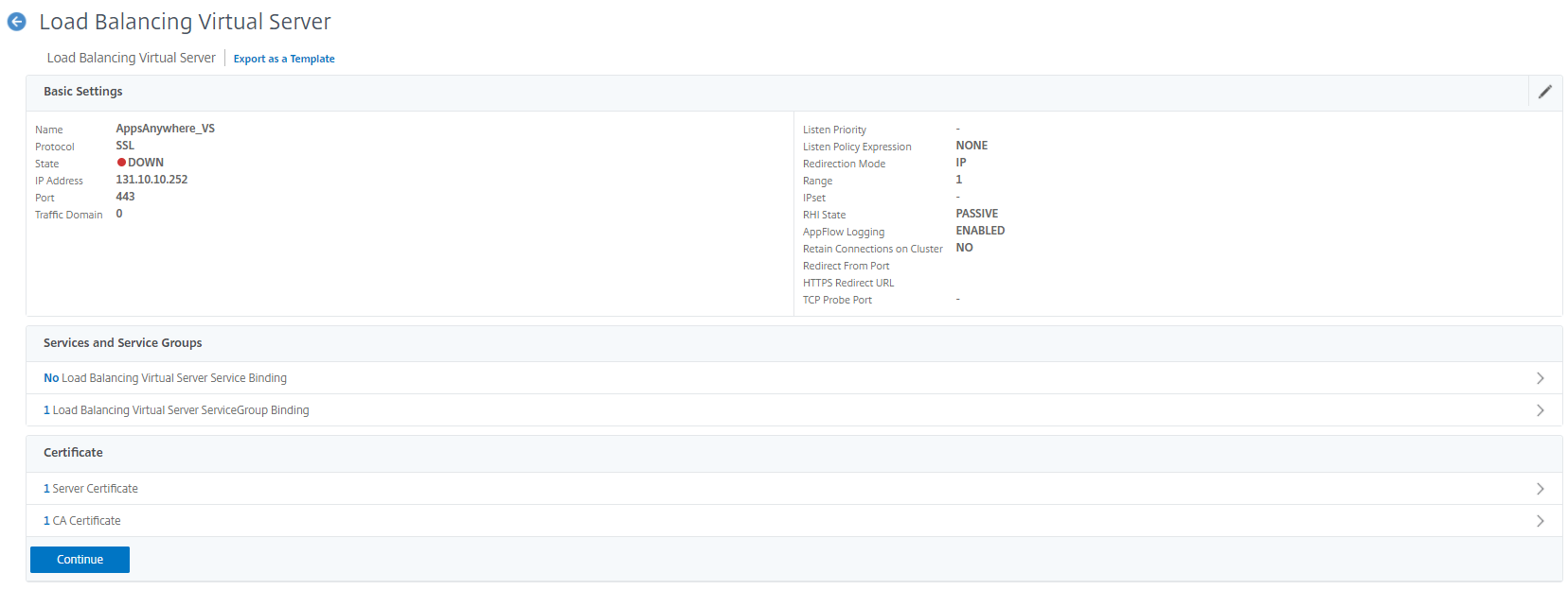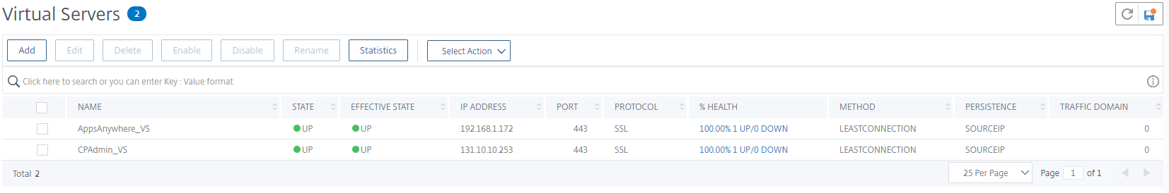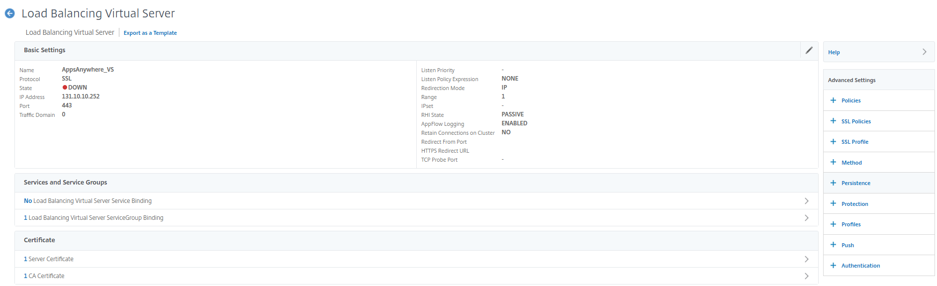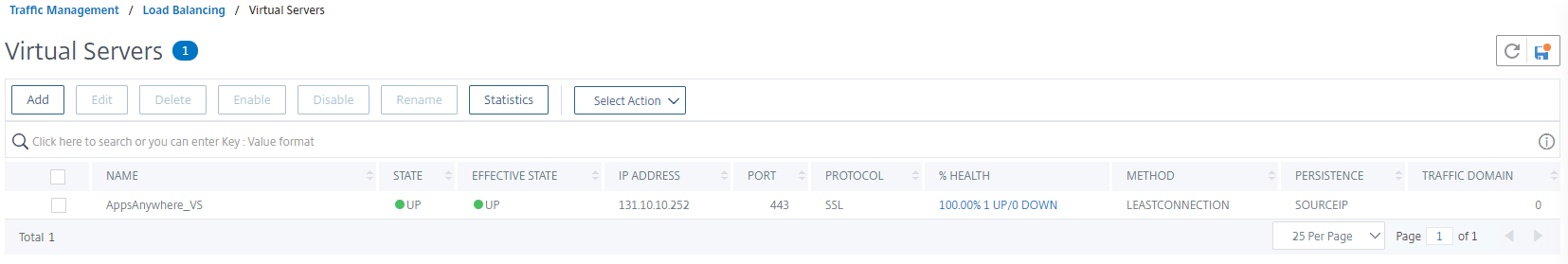 Navigate to Load Balancing > Virtual Servers and select the AppsAnywhere entry
