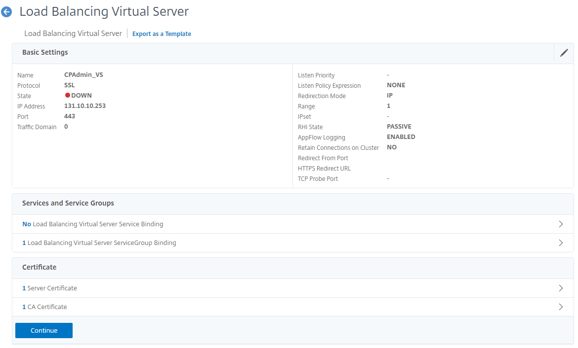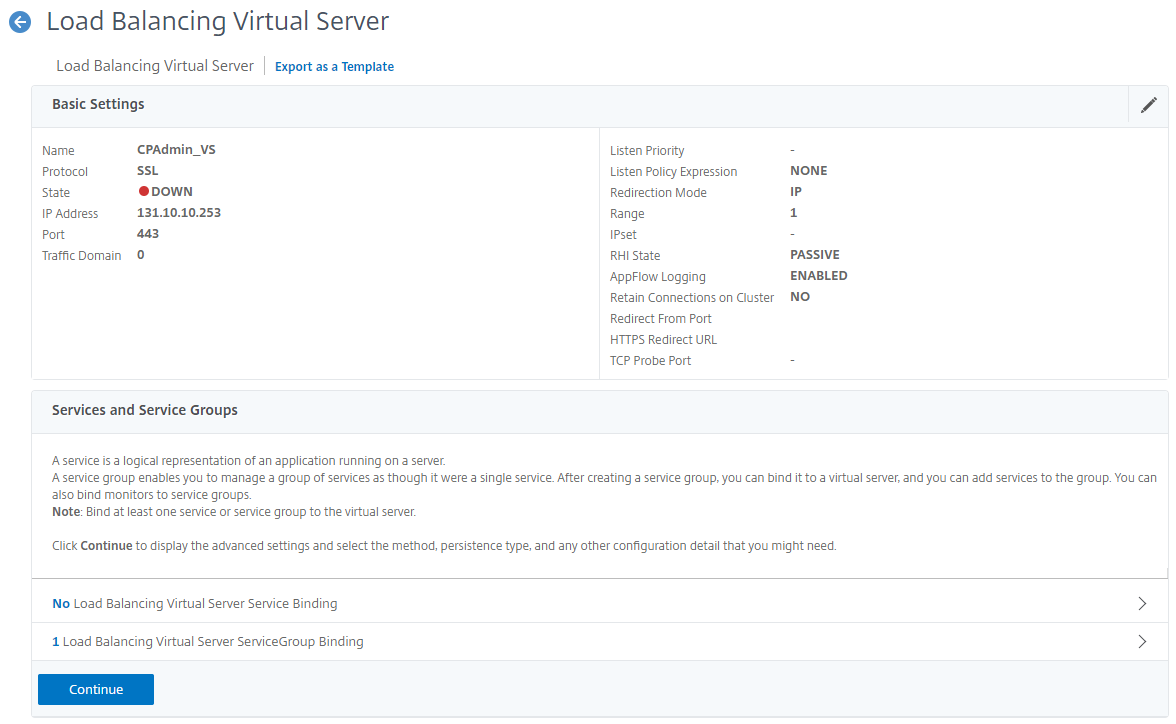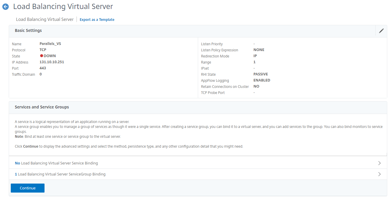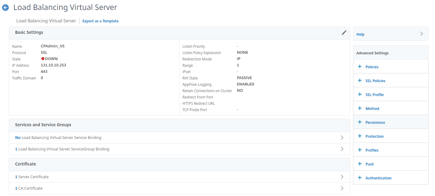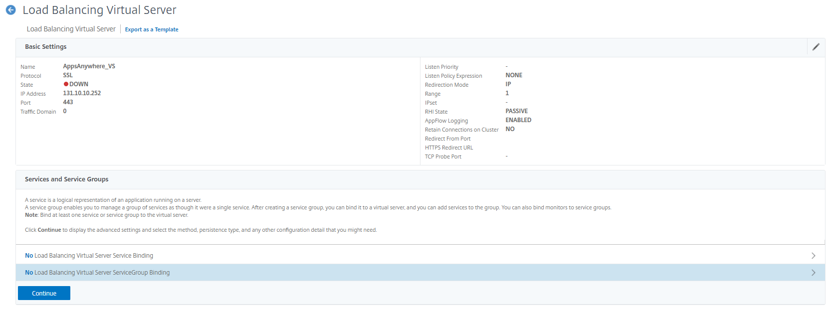 Navigate to Load Balancing > Virtual Servers and select the AppsAnywhere entry