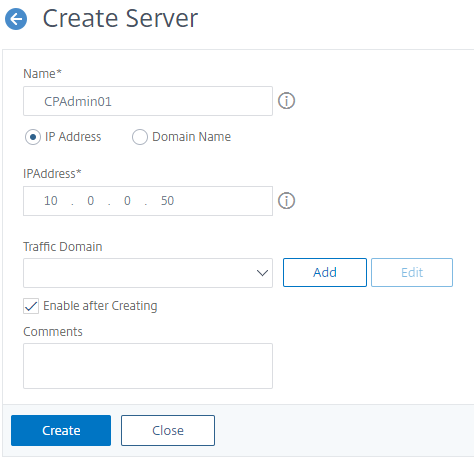 Specify the required name and IP address of your Cloudpaging Admin/License server and click Create to add the entry: