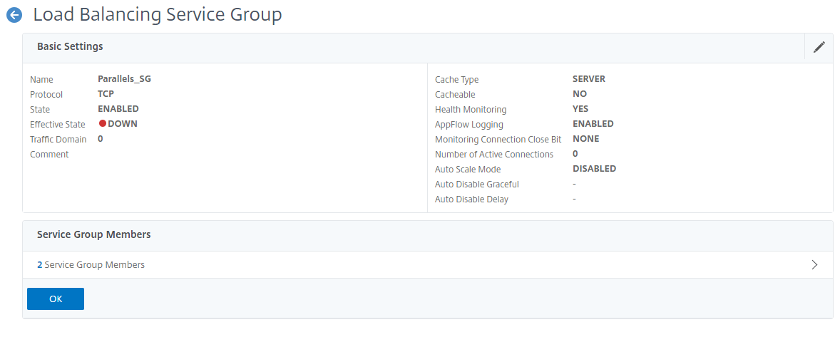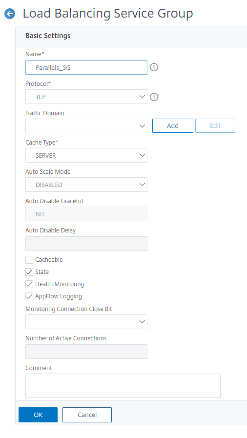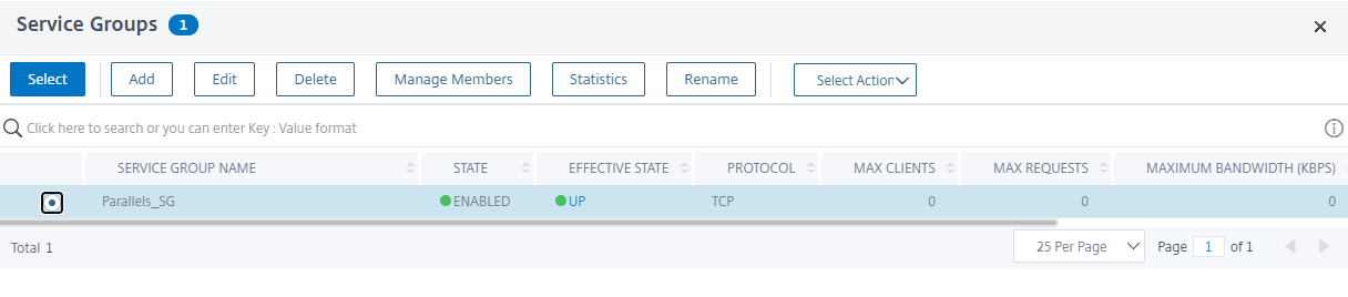 To create a service group containing the Parallels RAS Gateway servers, select Service Groups from the Traffic Management -> Load Balancing section: