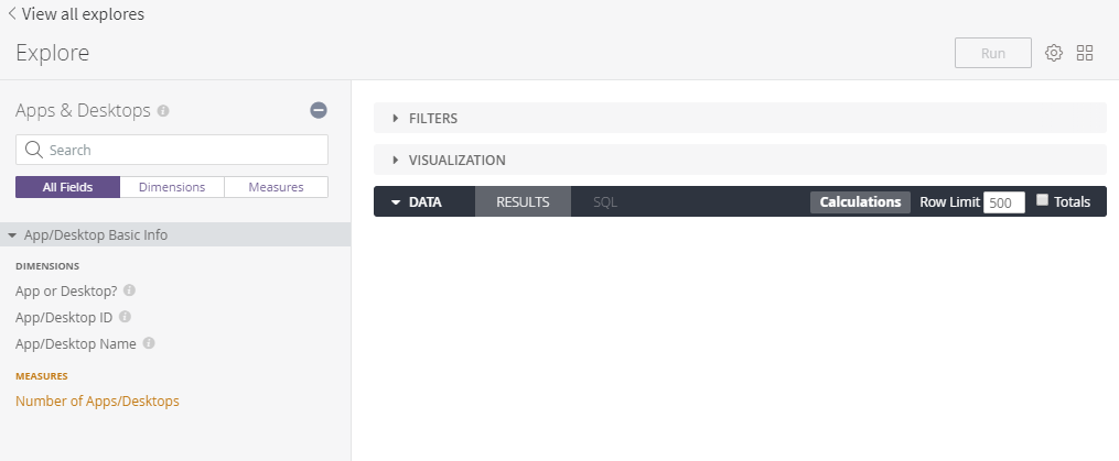 Continuing from where we left off with the number of apps and desktops, click to expand the VISUALIZATION section of the explore view.