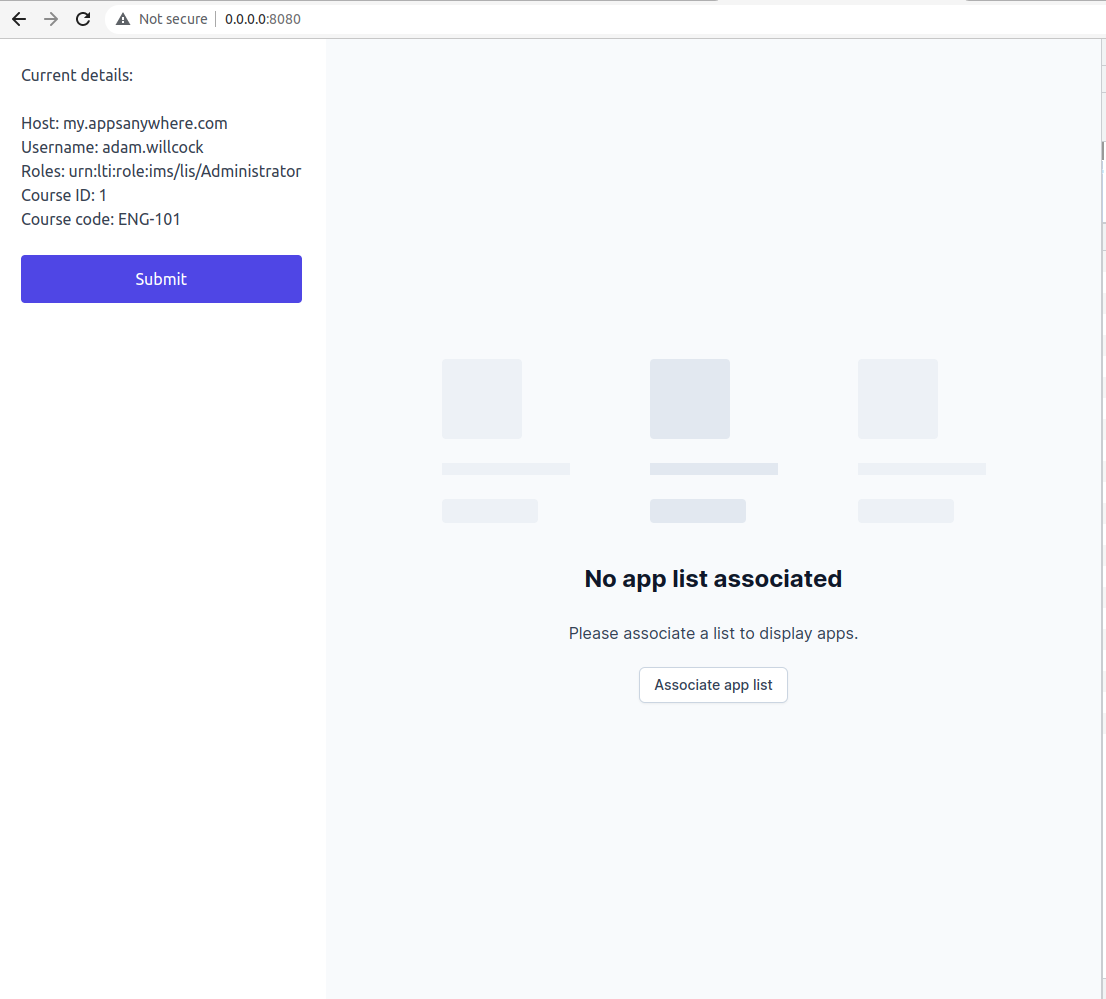 The form parameters listed here are what need to be sent to AppsAnywhere, we then use this list to verify the request via OAuth and log the user in with the correct permissions for the course. You should not have to edit any of this for the example file to run. Though of course you are free to implement this however you prefer.