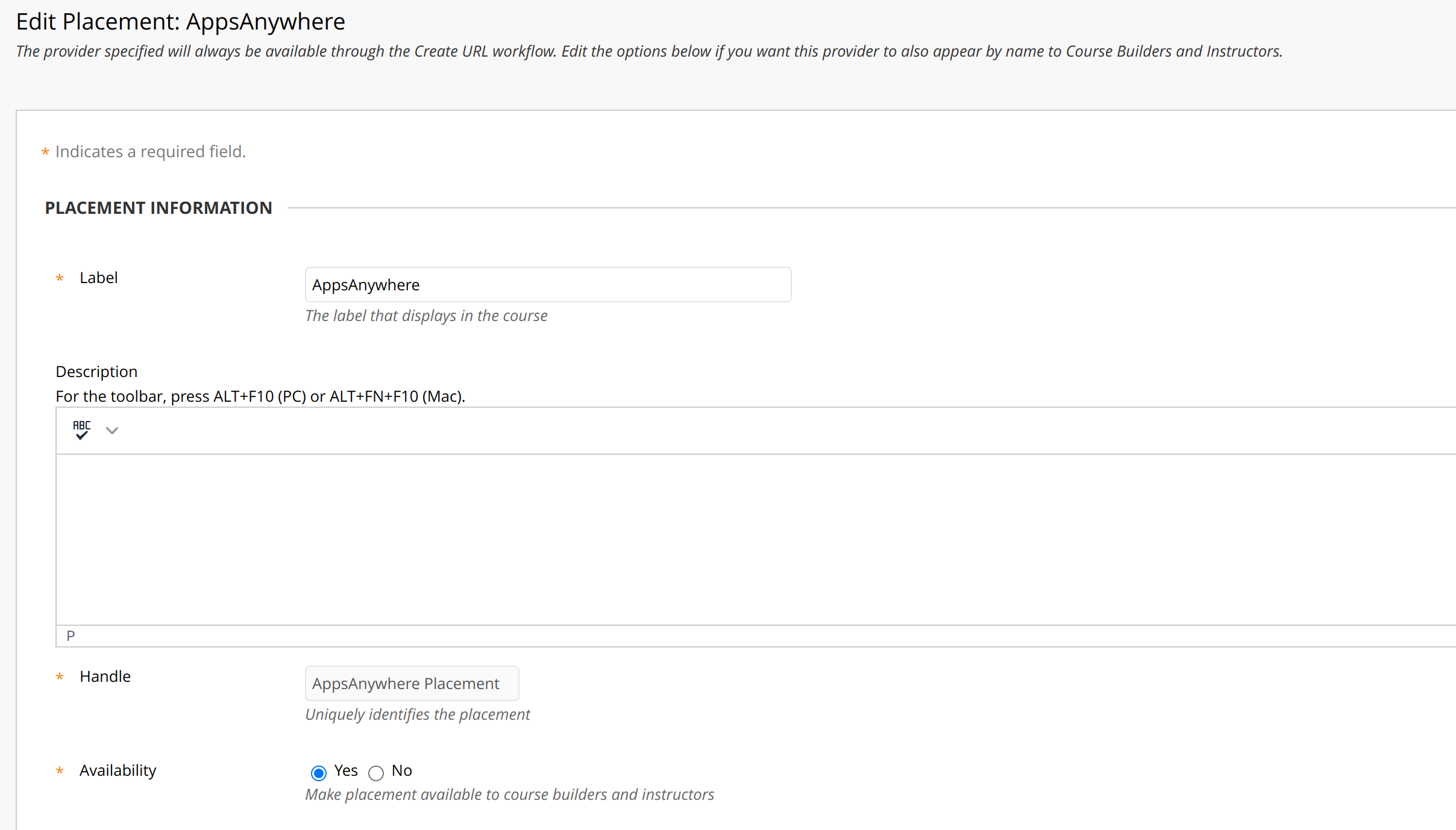 You will also need to enter a unique Handle for the placement (e.g. AppsAnywhere Placement).
