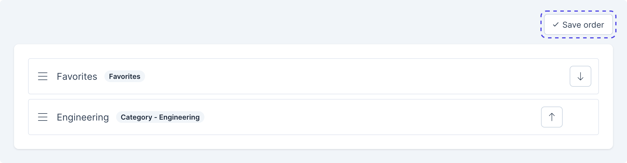 Once you have finished reordering the collections, click Save order. This will automatically save the collections