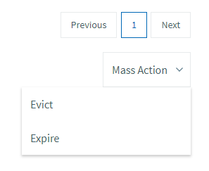 If you need to evict or expire more than one app session at a time, then you can select multiple rows in the table at once. When you do this, you can use the mass actions dropdown to the bottom right of the table to select an action to perform on all applicable rows. You will then see a dialog box warning you of the change you are about to make which you must accept before the action will be taken.