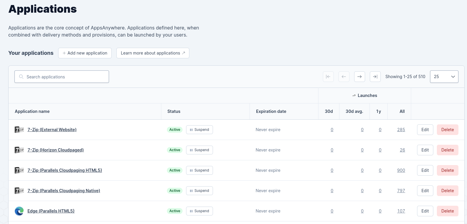 Here you will see a full list of applications currently defined in AppsAnywhere.