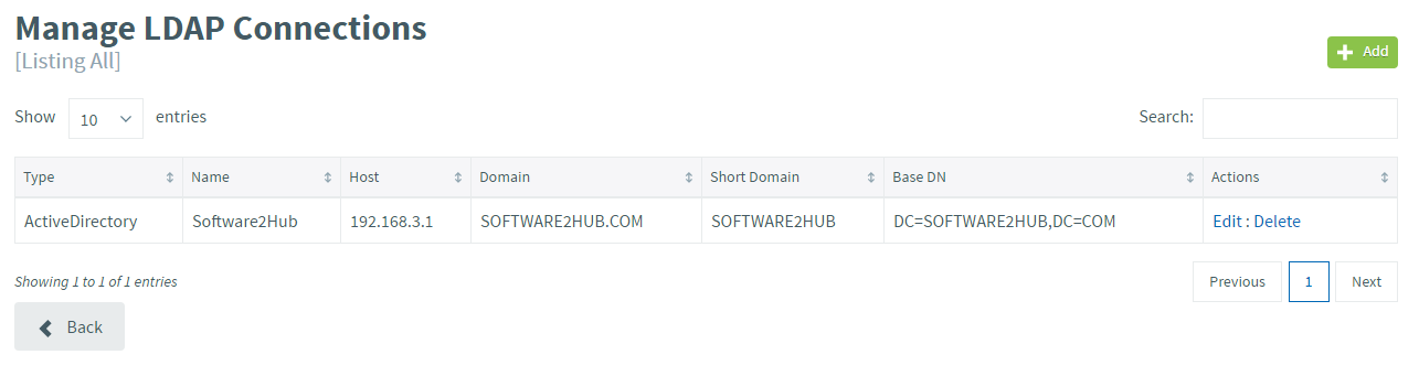 Click the Edit button next to a connection to modify the details of that connection - See Editing an LDAP connection