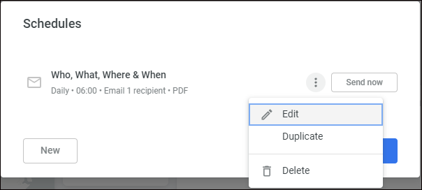 To edit or delete an existing scheduled report, simply visit the dashboard being reported on and select the Schedule Delivery option